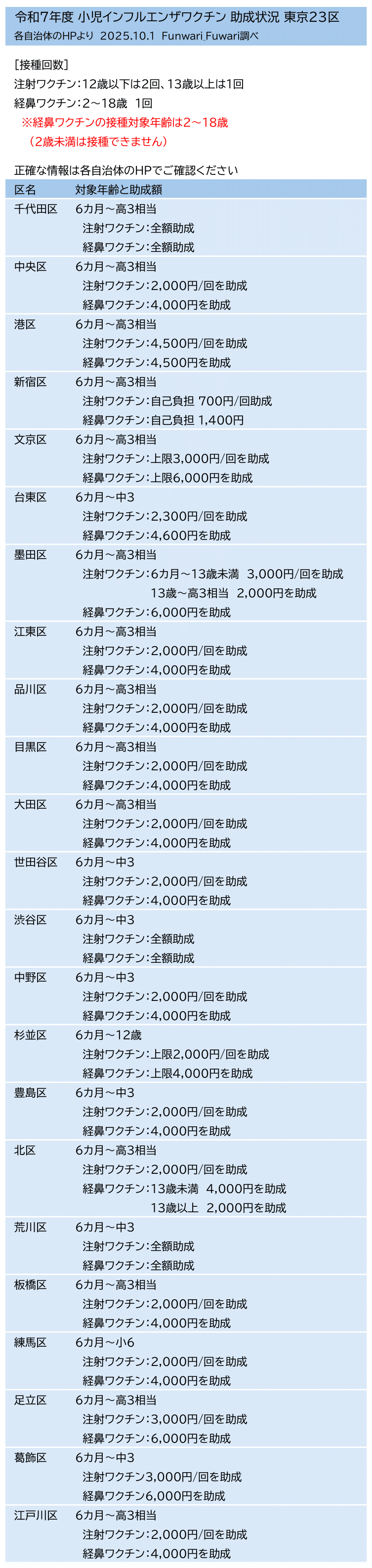 2025.10.1時点 Funwari_Fuwari調べ東京23区
